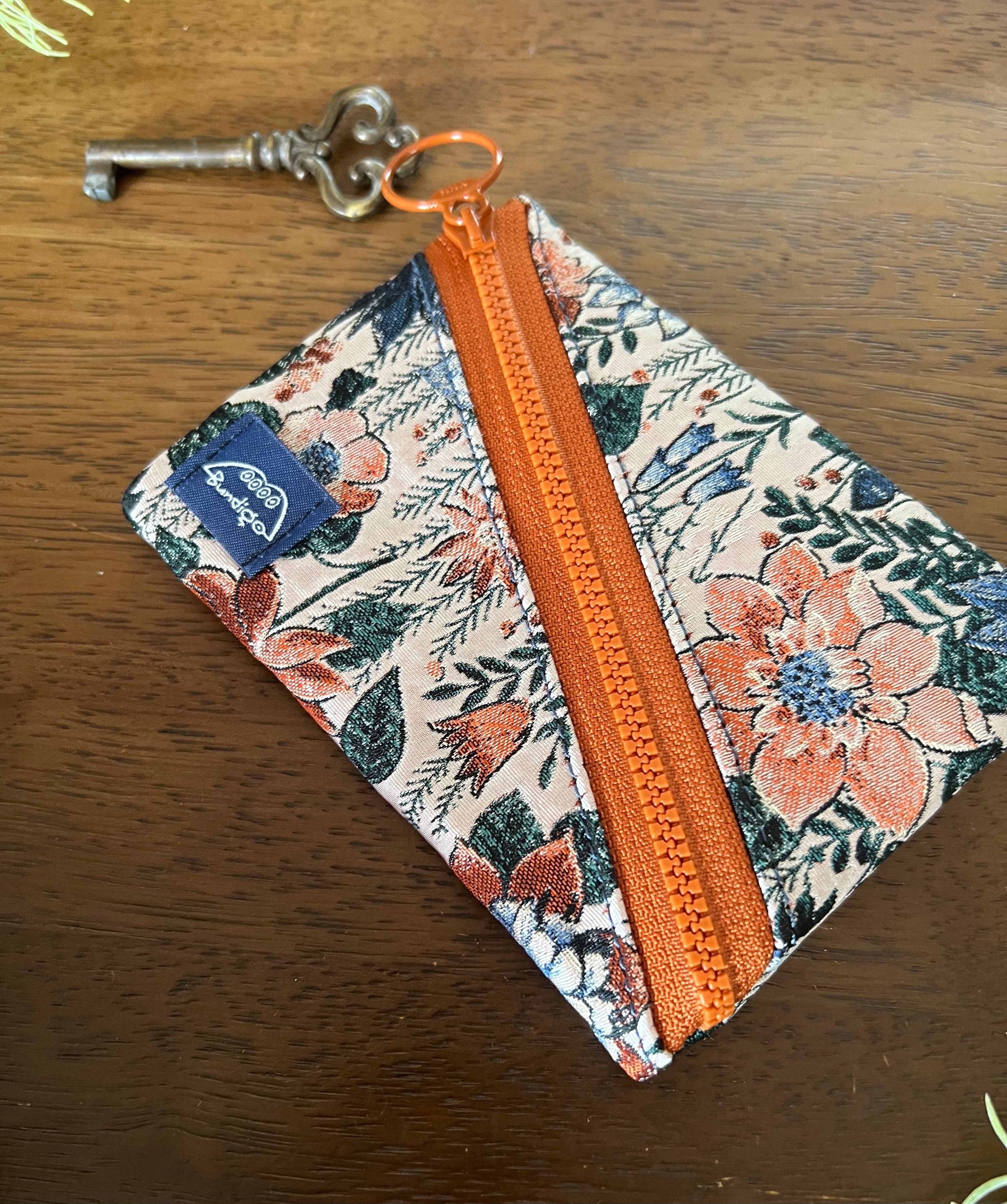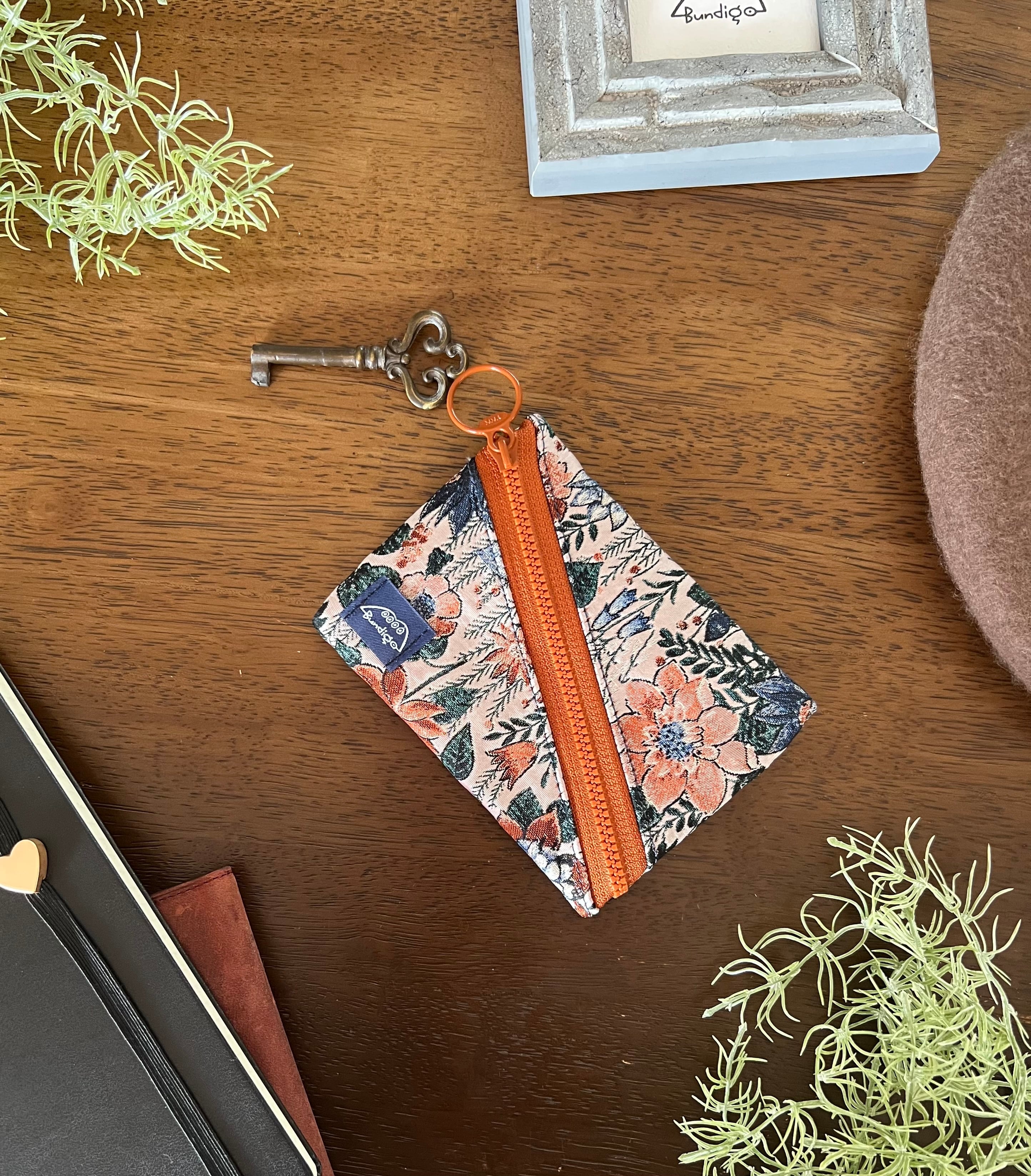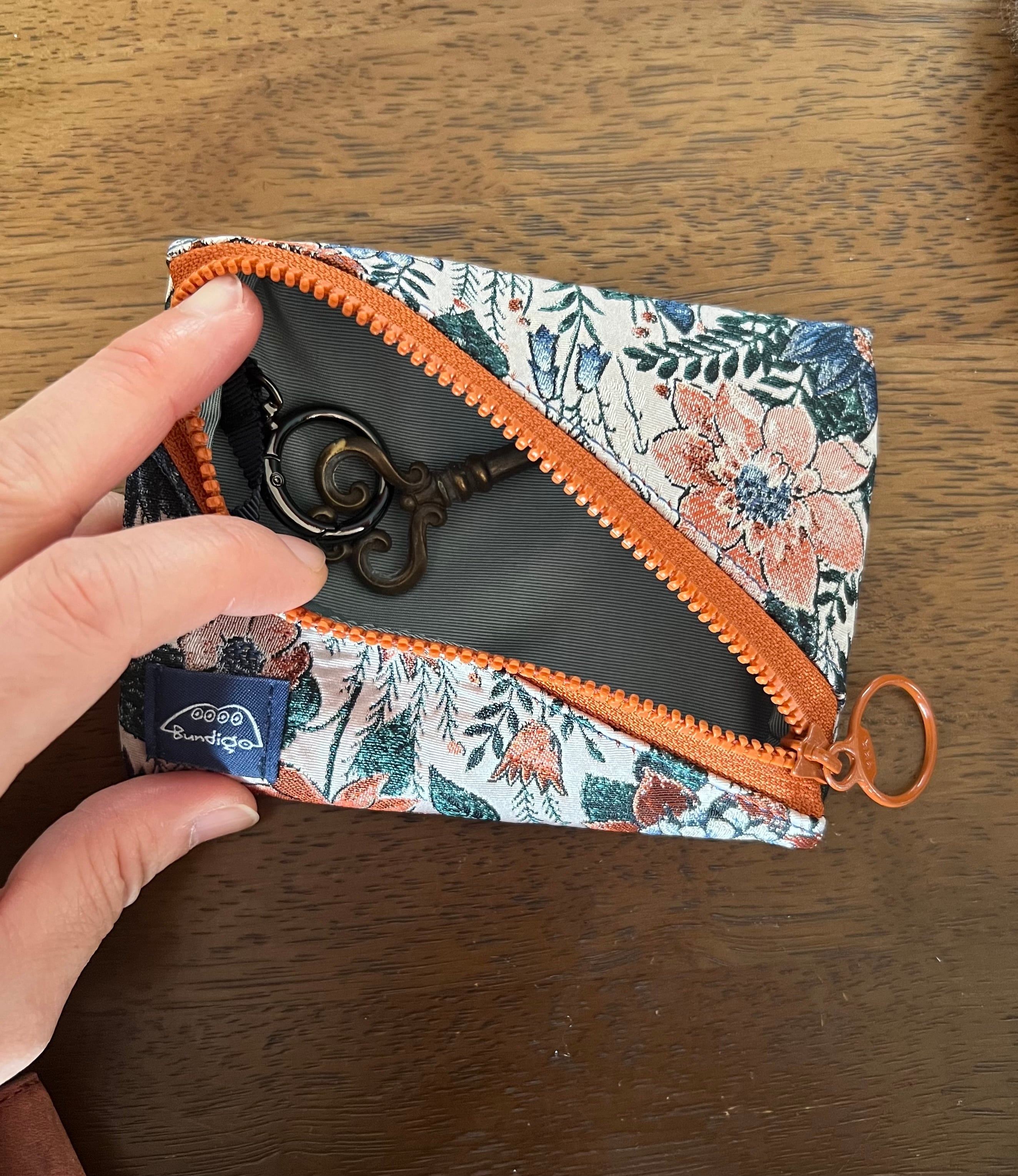 ポーチとしても、内側に取り付けたキーホルダーパーツ(丸カラビナ)でキーケースとしても、楽しんでいただけるミニアイテムです。