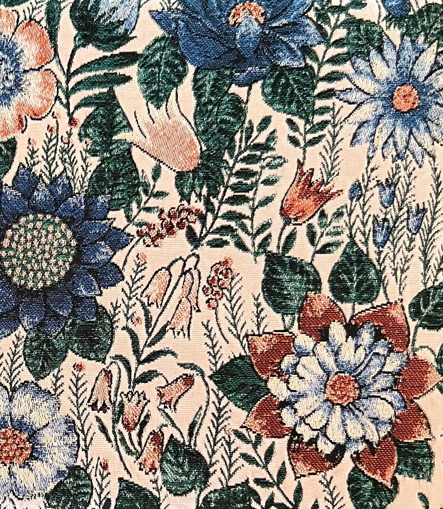 ピンクベージュ色をベースにオリエンタルな色合いの草花は、手元を優しい空気感にさせてくれる、そんな素敵な布地です。