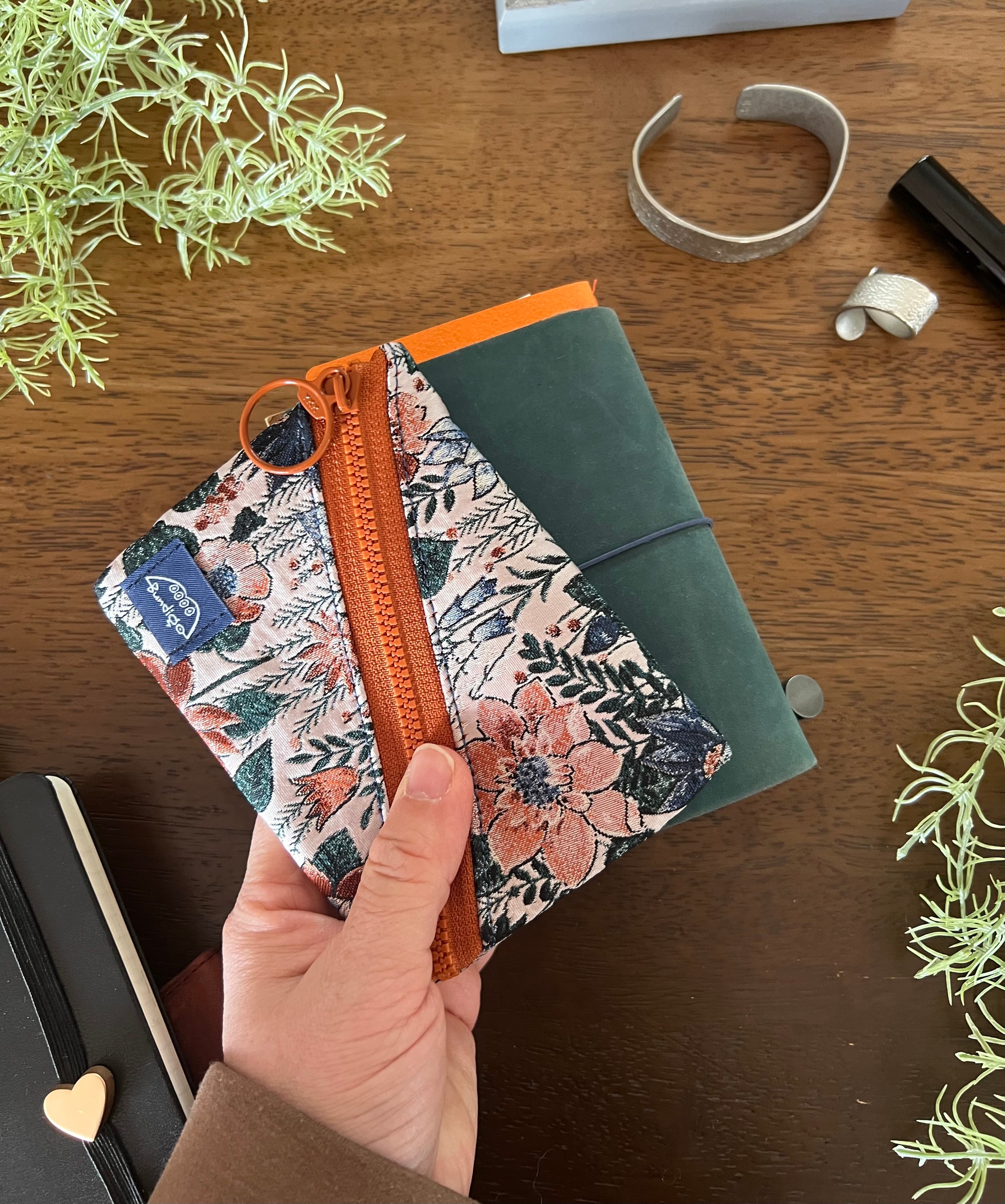 ピンクベージュ色をベースにオリエンタルな色合いの草花は、手元を優しい空気感にさせてくれる、そんな素敵な布地です。