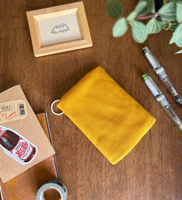 表布には、国産8号帆布はっきりとしたマスタード色を。